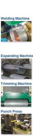 Shrinking MachineUrethane Bending MachineMulti-Roll Bending MachineDe-stacker/LoaderDe-stacker/LoaderMulti-Roll Bending MachineUrethane Bending MachineShrinking MachinePunch PressTrimming MachineExpanding Machine (circumference)Welding MachineWelding MachineExpanding Machine (circumference)Trimming MachinePunch Press